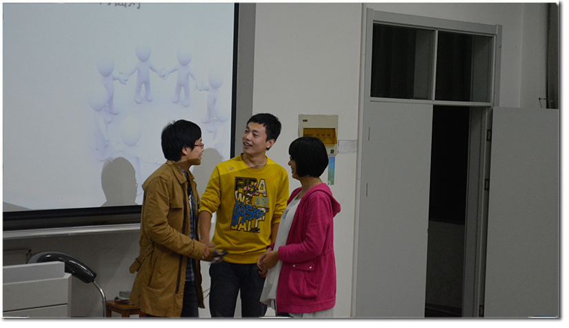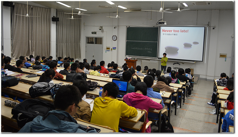 情景模拟结束后,宋怡老师开始了一些拓展性话题,为大家带来了关于在平时生活,如何合理的与人沟通,怎样在沟通中正确使用手势、面部表情等一些非常贴近我们生活的问题。最后以一句“Never too late!”结束了今晚的讲座,告诉大家学习沟通永远不迟。