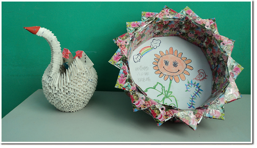 接下来是征文比赛和手工环保工艺品比赛,经过一周的作品征集,共收到100余篇征文以及50多件手工制作。评委老师经过认真评选,共选出13项小制作以及20篇优秀征文,并在赛后对获奖者予以表彰。