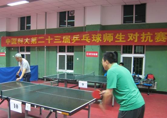 在男队方面,率先进行的男六队的比赛中,在落后两分的情况下,学生队的汪明星与教师队的孙治湖苦战五盘,最终学生队以大比分0:3无奈告负;男二队和男五队全力拼搏,虽有李焱(男二队)、赵博(男五队)为学生队各拿一分,仍无法阻挡教师队3:1取胜的步伐;男三队的比拼一度吸引了全场关注,学生队的林恂和白成联手以两个3:0为学生队率先夺得两分,而教师队似乎并未乱了阵脚,继第三盘教师队常振旗顶住压力击败刘丹阳之后,先失一分的邓伟平与季海波稳扎稳打,以3:2逆转,教师队获胜。
