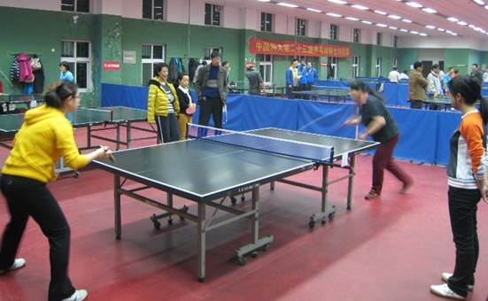 12月15日晚,东区乒乓球馆上演了一场既经典而又别开生面的比赛——师生乒乓球对抗赛。本次赛事由校体育部主办,校乒乓球俱乐部承办,校教工乒协和学生乒协协办,共有教师和学生队伍各八支(男队六支,女队两支),每支队伍由三人组成。赛制为五局三胜制,均为单打比赛。