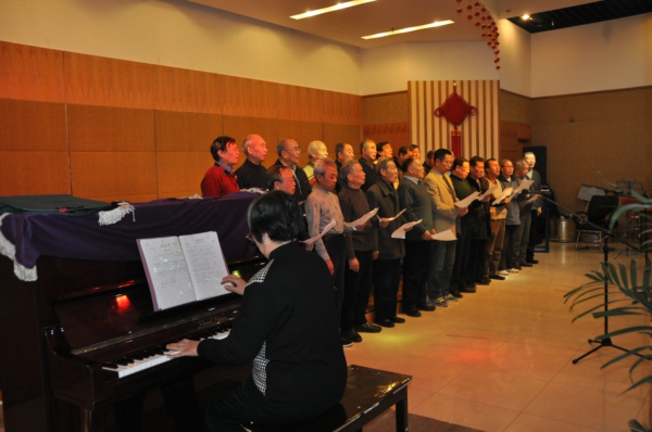 学院20多位退休男老师们合唱的校歌《永恒的东风》和《团结就是力量》,将联欢活动推向高潮,他们深情地唱着校歌,感染着在座的每一位观众,他们对科大的感情、对学术的热爱尽在其中!