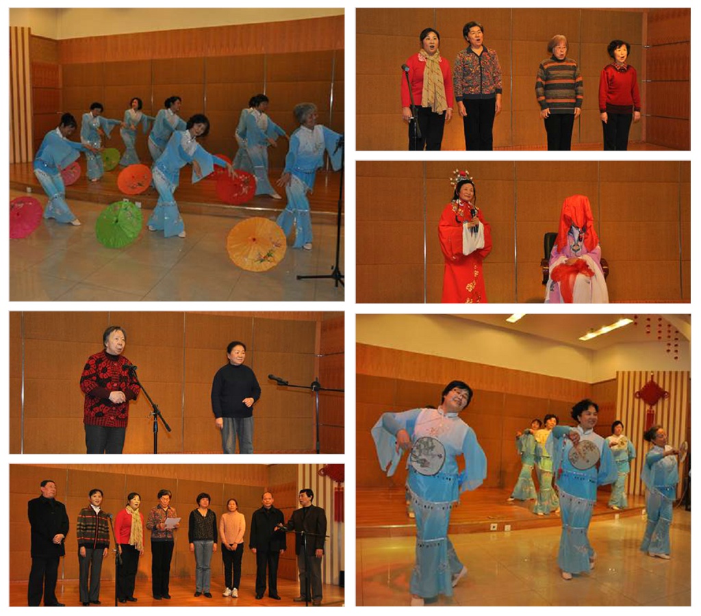 迎新年联欢会在离退办6位工作人员的小合唱《共和国之恋》中拉开序幕,真挚的演唱赢得了大家的喝彩。 张绪珍、苟荣珍等9位老师给大家带来舞姿表演《烟花三月下扬州》,她们在悠扬动听的歌声中,演绎着轻盈曼妙。 京剧是国之精粹,林培炎、常筱华老师字正腔圆,表演精湛,为在座观众带来了《西施南梆子选段》。 由徐维民、杨萍华等8位老同志带来的四重唱《瑶山夜歌》,旋律起伏清晰,歌声优美动听。 任苏菲、曹蓓等四位老师为大家表演了女生二重唱《清晨我们踏上小道》、《红梅花儿开》,歌儿虽然古老,却是承载了离退休老同志们曾经的青葱岁月。宋振玉、曹水清表演了越剧红楼梦选段《金玉良缘》,越剧唱腔婉转优美,引人入胜。 晏渝、马云等老师给观众带来了柔美的舞姿表演《天涯歌女》。