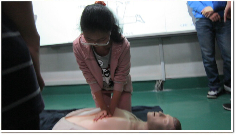 为了让同学们更加直观地了解心肺复苏术,宋中华医生用假人演示了心肺复苏术的具体操作步骤。之后,支教队员们在假人上模拟心肺复苏术,更好地掌握了心肺复苏的要点。
