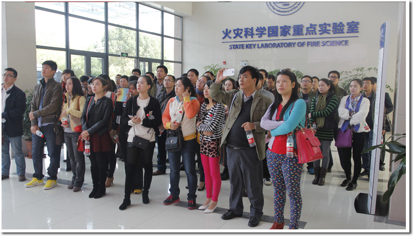 最后,来访老师参观了我校火灾科学国家重点实验室,实验室团总支书记祝玉泉老师为大家详细介绍了实验室在科技创新中的进展,并为大家进行了相关研究的实验演示。