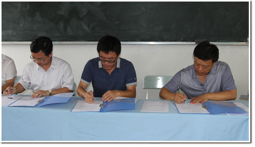 校团委副书记张平、金寨油坊店乡中心学校校长吴永安、六安团市委书记郭兴龙共同签署了《中国科学技术大学团员素质基地》续约协议。