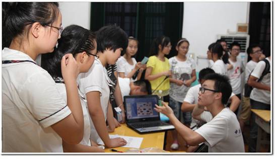 实践团队员们在石桥中学举办了六场学习经验交流报告会。石桥中学的孩子十分积极,近200位高中生几乎塞满了整间多媒体教室。