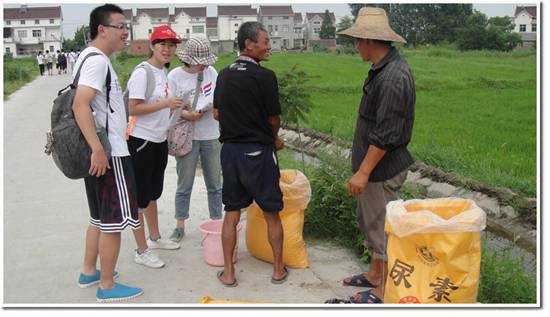 实践团承担了450份关于农村土地流转问题的调查问卷,队员们连续三天都出门调研,在盛夏烈日下步行于村落间,走得腰酸腿疼,甚至磨破了脚。几天下来队员们都晒黑了,甚至晒伤了皮肤。但所到之处,老乡们热情地招待我们喝水和吃瓜,积极配合我们的调研工作,向我们诉说生活的情况和自己对土地政策的看法。面对老乡们的信任,队员们下定决心一定要保质保量完成调查工作,把最真实的情况反映出来。队员们每天都会在一起交流调研的经验和见闻,还坚持当晚就把调研结果录入电脑。