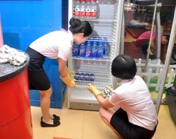 为了能以清爽的面貌迎接前来锻炼休闲的师生们,会籍部和棋牌室的前台MM们积极行动起来了,虽不是专业保洁员,但打扫起卫生来照样是一板一眼、有模有样。转眼间,冰柜的玻璃门又变得明亮如新、大班台与书报架更是一尘不染,就连那千人拿、万人用的健身手牌,经过前台MM们的细心擦拭,也是清清爽爽,干净透亮。