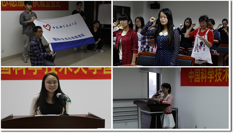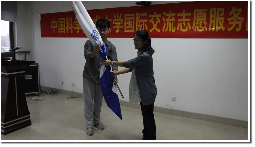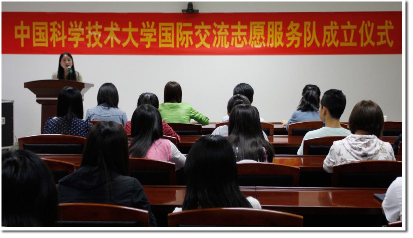 会上,国际交流委员会李媛老师对志愿服务队筹备情况进行汇报。校团委郑杰老师宣读了校青[2013]21号《关于中国科学技术大学国际交流志愿服务队成立的通知》。