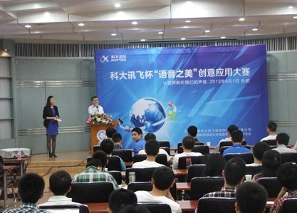 6月1日晚,信息学院在西活学术报告厅举行科大讯飞杯“语音之美”创意应用大赛启动仪式。科大讯飞语音云技术部的于继栋经理等一行10余人以及200多名感兴趣的参赛选手和观众出席了启动仪式。