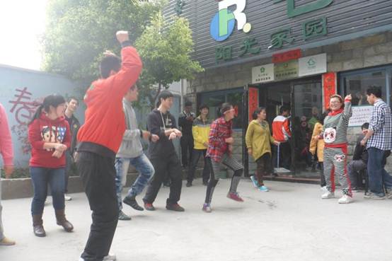 志愿活动由“大清洁活动”,“室外文艺活动”和“活动总结会”三部分组成。在“大清洁活动”中,志愿者们和那里的儿童一起打扫房间,指导他们清洁卫生,使他们学会更多的独立生活的技巧,更好地适应社会。在“室外文艺活动”中,志愿者与孩子们甚至是老师们都挑起了舞蹈,唱起了歌,甚至还玩起了武术!在手牵手跳舞环节,大家都快乐的参与进来了,志愿者与孩子们随着音乐翩翩起舞。 在《感恩的心》这首歌播放的时候,孩子们与志愿者们纷纷表演起了手语歌,还兴致勃勃地一起跳起了之前非常流行的韩国歌舞《江南style》。