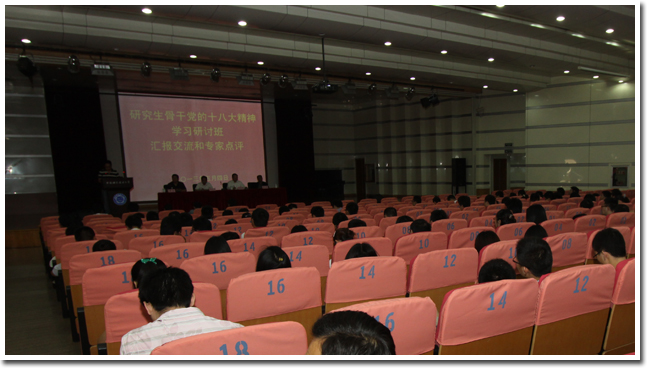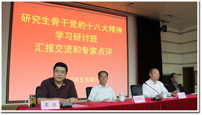 5月4日下午,研究生骨干十八大精神学习研讨班在西区学生活动中心礼堂开展汇报交流和专家点评,旨在交流学习成果,同时邀请专家进行点评,进一步促进学员们对十八大报告精神的理解。我校人文学院孙显元、吴兆雪老师,安徽师范大学汤文曙老师,学生工作部处有关老师以及研讨班学员参加了活动。交流活动由学生工作部处长董雨主持。