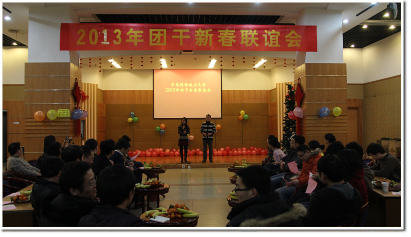 1月16日晚,东区师生活动中心多功能厅花团锦簇,欢声笑语,到处洋溢着浓浓的喜庆气氛,我校2013年团干新春联谊会成功举办。全校团学干部共同参与了此次新春联谊会。