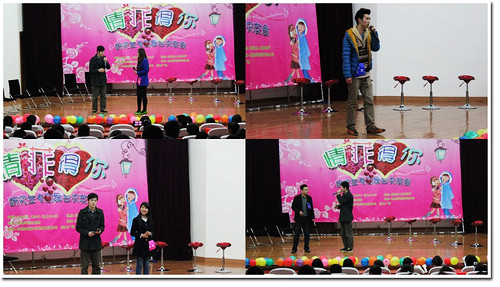 19:00开始,水上报告厅就被热情的亲友团和观众挤满,“情菲得你”正式拉开帷幕。主持人带领嘉宾及观众进入到活动第一个环节---“一见倾心”。男女嘉宾依次登场与大家见面,并进行简单介绍,同时大屏幕上播放着嘉宾们精彩的VCR。有些嘉宾还进行了自己的才艺表演,如唱歌,书法作品展示。第一个环节结束,嘉宾们都对彼此有了初步的认识。