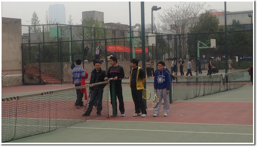 3月30日10:00,巡回赛第九站比赛在西区网球场正式开始,下图是选手们与观众们在比赛之前的合影