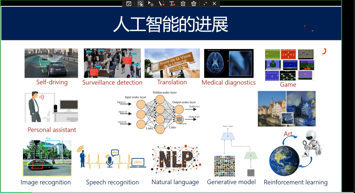首先,周明博士以身边日常的实例,引导同学们认识到身边的人工智能技术,对人工智能突飞猛进的原因进行分析,向同学们介绍了人工智能技术所取得的成果。数据、算法、计算构成了人工智能的三要素,这三个方面的迅猛发展为人工智能的神经网络方法提供了保障。进一步地,“自然语言处理是人工智能皇冠上的明珠”,周明博士使用比尔盖茨对自然语言的评价,引出了对自然语言进展的讨论。