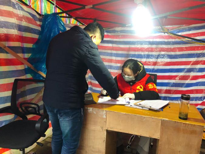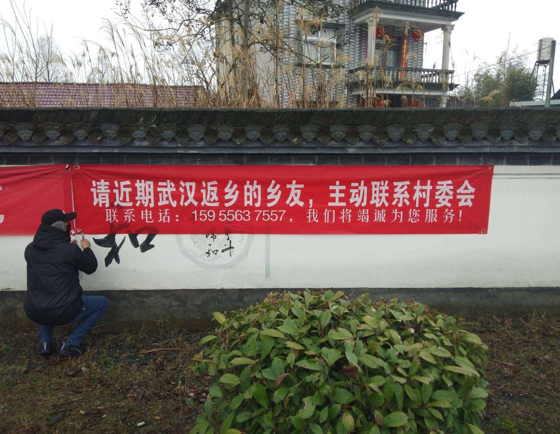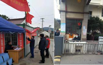 在村口设点对出入人员测量体温并对过往车辆进行登记 2月16日