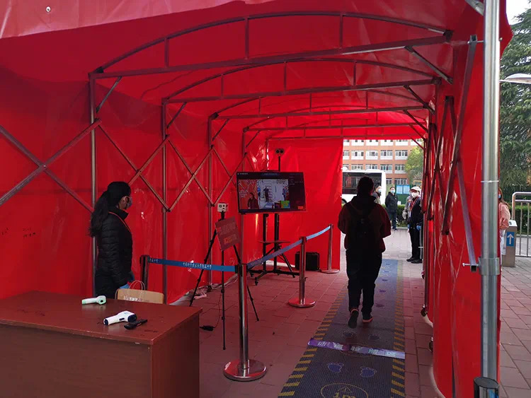 清新互联捐赠的双光谱AI热成像体温筛查设备可以同时对多人进行远距离精准体温检测,适合大场景、高人流量的体温实时监测环境。设备已安装在科大附中出入口通道、西区图书馆室内闸机进出口通道前方等地,顺利协助科大附中毕业班年级同学安全返校,最大限度保障师生等人员的通行安全。