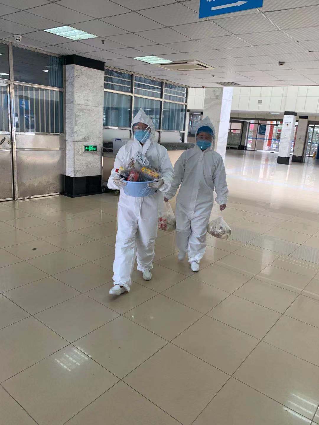 医学留观区是针对潜伏期内返校人员或未明确病因的可疑症状患者实施医学留观,为校内疫情防控及突发事件应急处置提供的缓冲区。疫情期间,校医院将四楼、五楼、六楼病区全部改造设置成了留观病区。将前期少数已返回的湖北籍学生隔离留观在六楼病区;非湖北籍学生隔离留观在四楼、五楼病区。留观区有专门医护人员轮流值班观察、看护,为留观人员给予每日三餐配送、热水供应、测量体温、病房消毒、病情观察、心理关怀等服务。对于每项工作,他们都一丝不苟、尽心尽责地去完成。当一天忙碌而紧凑的工作结束后,脱下厚重的防护服,汗水早已湿透了衣背,面部也因缺氧胀得通红。