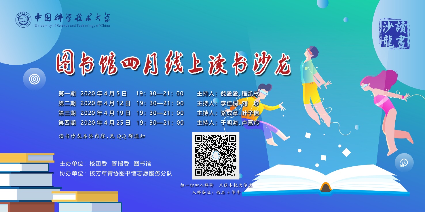 习总书记在《之江新语》一书中写道:“要真正把读书当成一种生活态度、一种工作责任、一种精神追求、一种境界要求”。阅读是心灵之约,更是智慧的碰撞。书籍是全世界的营养品,读一本好书,可以得到一次心灵的洗涤。多读书,读好书,好读书。让自己在阅读中受益,在阅读中体会,在阅读中成长。校图书馆五月线上读书沙龙活动即将拉开序幕,期待更多的阅读爱好者扫描海报中的二维码报名参与。