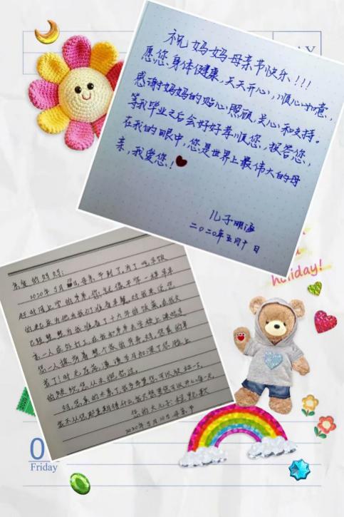 来自物理学院18级硕士卢嘉炜同学给母亲写到:亲爱的妈妈,您有时温婉动人,有时体贴入微,有时不怒而威,虽然如此百变,但是对我的心却从不变。