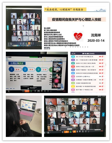 岁末年初,新冠肺炎突如其来,严重威胁着人们的身体健康和生命安全,同时也给人们带来巨大的心理压力和精神负担。为了落实中国科学院、教育部和安徽省教育厅关于新型冠状病毒疫情防控工作文件精神,切实做好疫情防控期间我校师生的心理关护工作,自疫情发生以来,我校学生工作处心理健康教育与咨询中心心理咨询师团队第一时间形成合力,利用专业知识为广大师生提供专业的心理援助和支持,贡献专业的团队力量,打响了一场心理战“疫”。