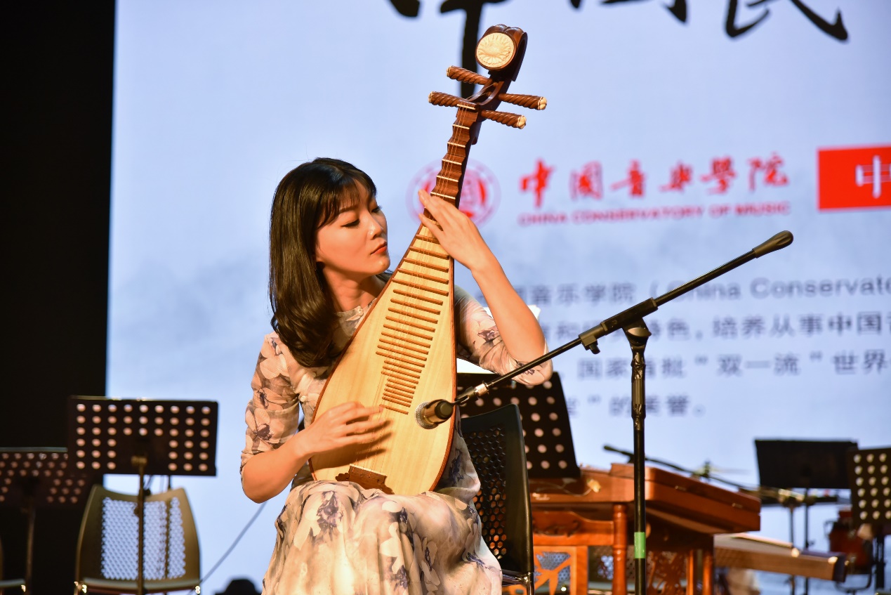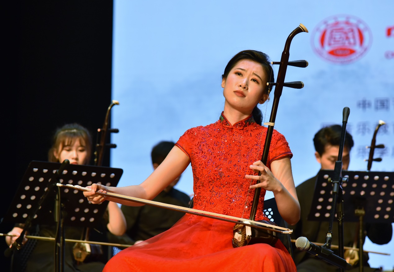 民族器乐独奏部分,当代杰出唢呐演奏家张倩渊、青年琵琶演奏家杨婷婷,二胡表演艺术博士刘宇带来了精彩表演。唢呐独奏《一枝花》由散板、慢板、快板三部分组成,旋律层层向上发展,既有变化又高度统一。情绪从压抑到激愤,再到悲壮,最后定格于辉煌,让全场观众感受到了英雄人物一生的情感起伏。琵琶独奏《龙船》在琵琶上模拟锣鼓声响,风格独特、手法新颖,清脆如小溪叮当,浑厚如隔窗闷雷,急切如雨打芭蕉,舒缓如绵绵细雨,激烈如金戈铁马,赢得了现场观众的阵阵掌声。二胡曲《二泉映月》是大家非常熟悉的经典曲目,因音乐家阿炳经常在无锡二泉边拉琴,取其景致名称而得名。作品展示了独特的民间演奏技巧与风格,以及无与伦比的深邃意境,显示了中国二胡艺术的独特魅力。