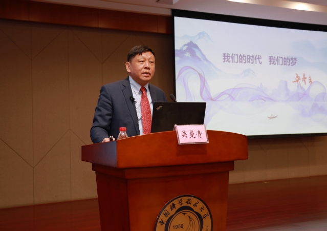 1223日上午,“国企领导上讲台”公开课活动在中国科大东区师生活动中心举行,中国电子科技集团有限公司(以下简称中国电科)总经理、党组副书记、中国工程院院士吴曼青作题为《我们的时代 我们的梦》的主题报告。中国科大党委副书记、纪委书记毕金初主持报告会,校长助理吴枫、相关部门负责人,以及全校200余名师生聆听了报告会。