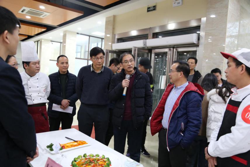12月18日、19日下午,我校第五届学生食堂岗位技能大赛在东区学生食堂举办,校党委常委、副校长王晓平莅临现场指导工作。本次大赛邀请了合肥市包河区、蜀山区市场监督管理局及我校相关部门的领导,与国家特一级烹调师焦福成、中式烹调高级技师郑国陈、面点大师葛克铭、中式面点高级技师孟呈娟担任专家评委。赛前,饮食服务集团通过微信报名的方式招募了20名学生担任大众评委。