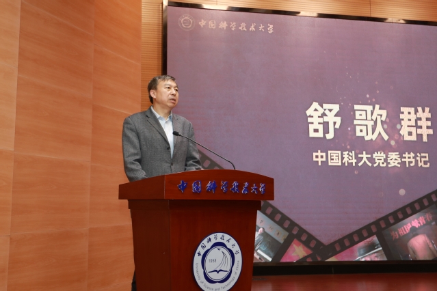 舒歌群书记在致词中代表学校对新华社主创人员、向参与创作的老师和同学们表示衷心的感谢。舒歌群说,“两弹一星”功勋科学家郭永怀先生是中国科学技术大学的创建者之一、化学物理系首任系主任,是中国近代力学事业的奠基人之一,著名力学家、应用数学家、空气动力学家。这次,中国科大和新华网联合拍摄了微电影《永怀初心》,是为了进一步弘扬郭永怀先生无私奉献、以身许国的“永怀精神”,激励广大青年学子牢记科教报国、追求卓越的初心使命。