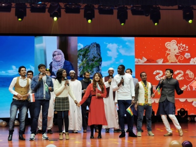 2019年12月30日晚,由中国科学技术大学国际学院和中国科学技术大学留学生会主办的2020年留学生新年晚会在西校区大礼堂举行。国际合作与交流部副部长瞿昆,国际合作与交流部副部长、国际学院副院长蒋家杰,国际合作与交流部副部长王晨和留学生办公室的老师们出席了晚会,与五洲学子们齐聚一堂,共飨艺术盛宴。