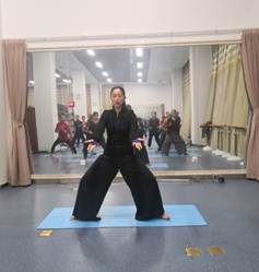 郝红梅老师和大家分享了太极瑜伽散中求聚、积点成圆、万物归点、万物趋圆、意在进退、探索无限的理念。并和学员们进行了站桩功、坐桩功和基础太极瑜伽的展示、练习与互动。