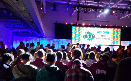 iGEM是为推动合成生物学发展,于2003年开始举办的涉及生物学、数学、物理学、计算机等多个学科的国际学术竞赛。参赛队伍使用主办方提供的材料自主完成项目,通过编写队伍wiki、海报讲解、演讲展示等方式进行交流评比,在诊断与治疗、能源、环境、食物与营养、信息处理、艺术设计、硬件、软件等多个方向决出奖项。今年iGEM由来自全球各个国家多达375支队伍参加比赛,其中到达Boston现场参加总决赛的有近7000名学生,包括来自MIT,Harvard,Stanford,Cambridge,Imperial College London等世界名校的代表队,竞争十分激烈。