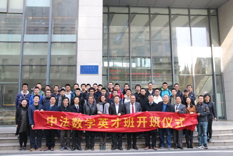 一年多以来,在中法双方,尤其是法国驻上海总领事馆文化教育合作处、巴黎七大教授暨中国科大长江学者讲座教授麻小南,中国科大数学科学学院副院长麻希南教授等人的共同努力下,中国科大数学科学学院通过全国中学生数学奥林匹克竞赛冬令营、自主招生、学院推荐等渠道,共遴选出29位数学成绩突出的学生组成中法数学英才班,按照独立的课程设置和培养方案,采取中法教师合作的小班模式进行教学,探索数学精英培养的新模式。作为中国科大数学学科继华罗庚班之后又一人才培养的新举措,中法数学英才班将努力为推进中国科大的“双一流”建设、为国家培养顶尖数学人才发挥积极贡献。