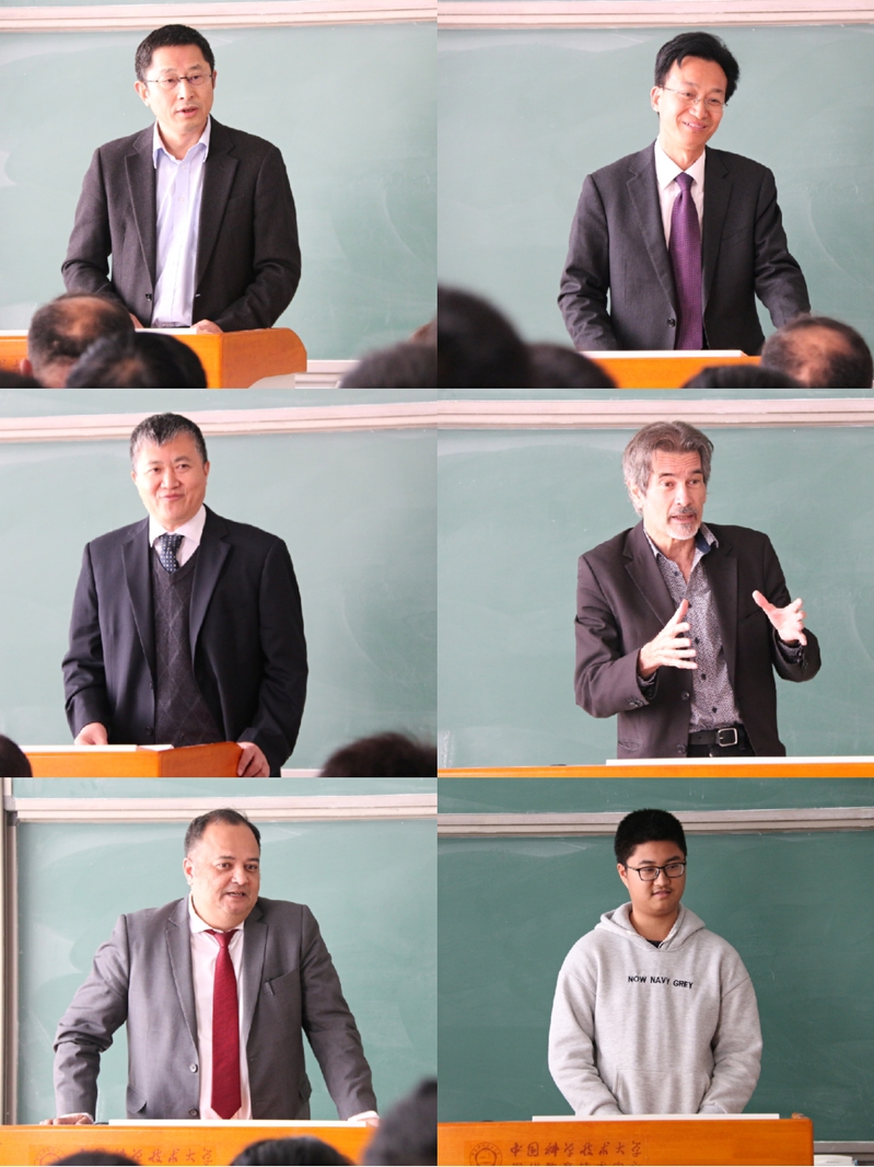 11月19日上午,中国科大举办中法数学英才班开班仪式。校长助理、教务长周丛照,招生就业处处长杨锋,数学科学学院执行院长李嘉禹,法国驻上海总领事馆文化教育合作处领事Fabien CHAREIX,巴黎七大教授Marc ROSSO等出席开班仪式并致辞。仪式由国际交流与合作部副部长蒋家杰主持,首届中法数学英才班全体师生共同参加了开班仪式。