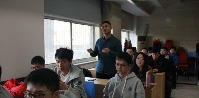 颁奖典礼后,张万能博士作了精彩报告。报告中,张博士介绍了GoGoCinema的发展状况,GoGoCinema是对未来影院模式一种新的开创和探索,是一种对影视内容利用率的优化、对用户观影选择和体验的优化、同样也是对影院观影内容和体验的优化。它集合了实时数据、移动支付、即时满足等特点,可以使服务随心应变,让喜爱观影的观众可以通过包场、拼场的方式参与热门大片或者经典老片的排期发起,也使得观影更加具有弹性,更符合影迷的期待。目前,GoGoCinema已经在上海、新加坡和马来西亚上线。GoGoCinema引起在场同学的浓厚兴趣,张博士和同学们就GoGoCinema相关问题进行精彩的互动问答。