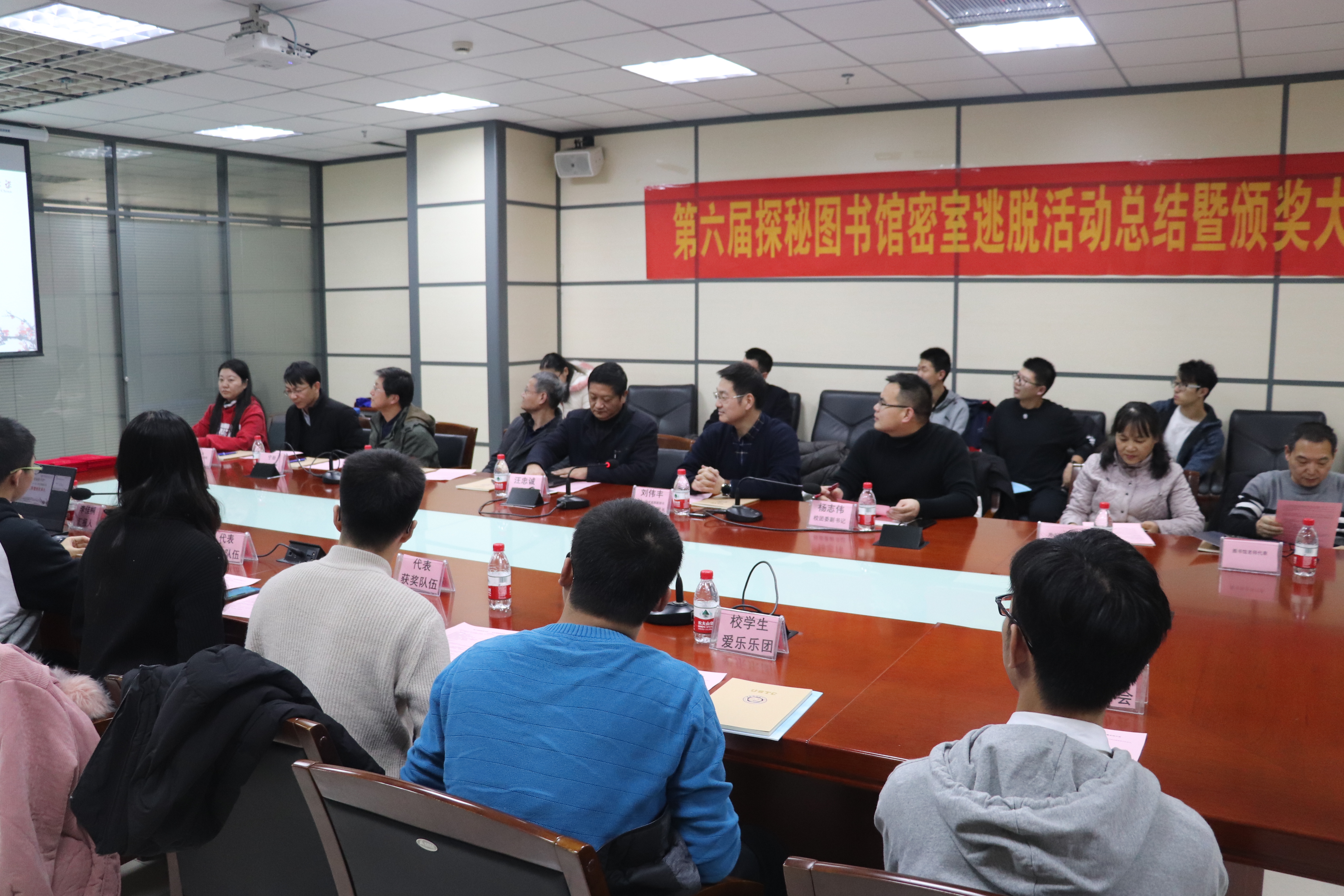 12月3日下午,第六届“探秘图书馆”——真人密室逃脱”活动总结暨表彰大会在东区图书馆609会议室举行。会议由图书馆志愿服务分队骆成章同学主持,李佳桐同学作汇报。学工部刘伟丰副处长、校团委杨志伟副书记、图书馆常务副馆长田乐胜、图书网络档案联合党总支书记兼副馆长汪忠诚、图书馆副馆长宁劲和图书馆有关老师出席会议,获奖同学代表以及校芳草青协图书馆志愿服务分队、校爱乐乐团、校摄影协会等合作社团代表参加了本次会议。