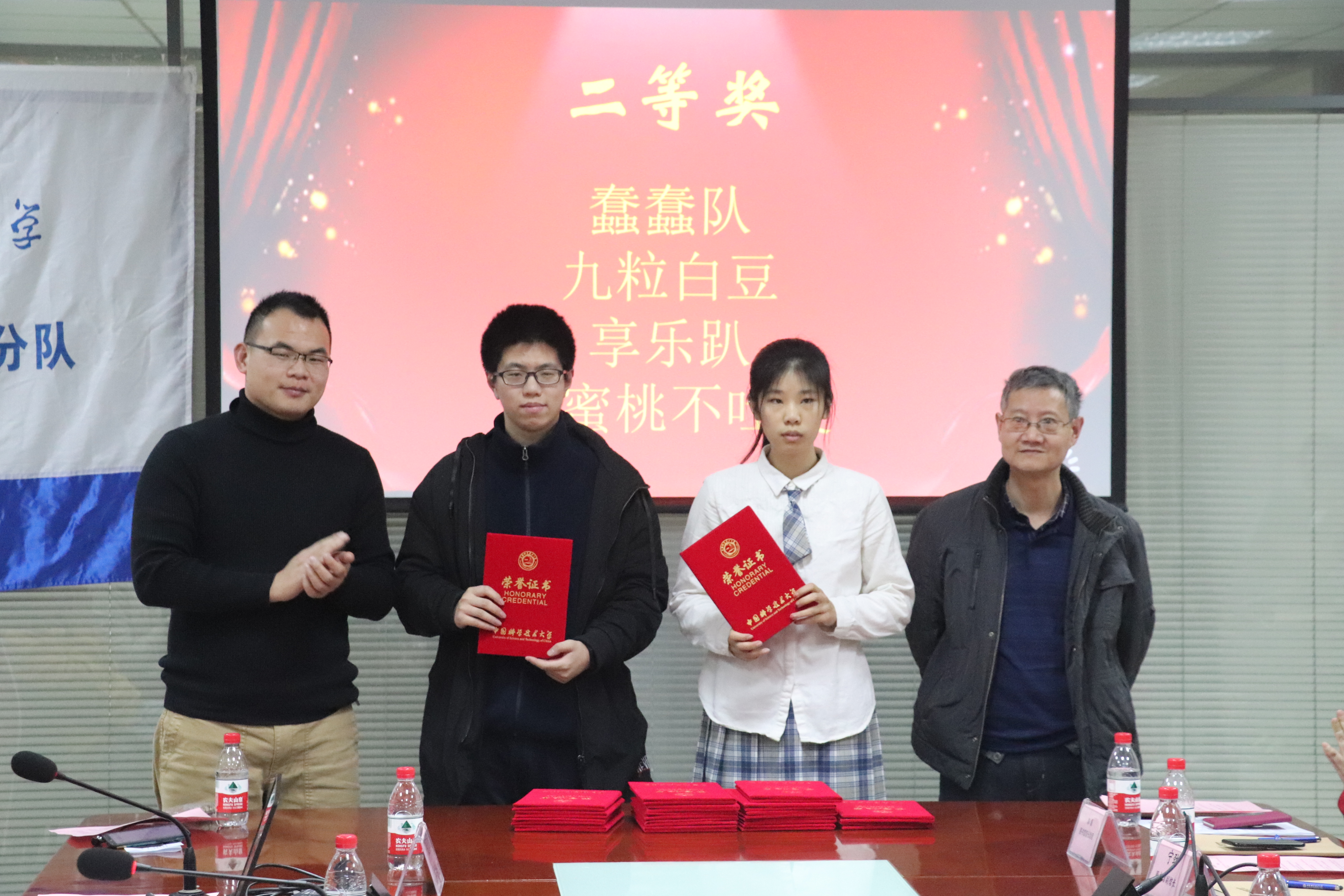 本次活动共设一二三等奖三项奖项。获奖队伍的名称非常有趣且有鲜明的队伍特色。获得一等奖的是“金秋十月队”和“不知道该取什么名字队”;获得二等奖的是蠢蠢队、九粒白豆队、享乐趴队和吃蜜桃不吐皮队;获得三等奖的是庐天精英队、四人帮队、蒙的全队、沿江高级中学代表队、树新峰队和成功配队。本次活动还设立了优秀志愿者奖、最佳工作前台奖以及优秀合作社团奖。老师们分别为这些获奖同学一一颁奖并合影留念。