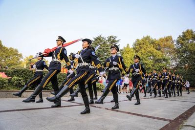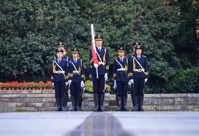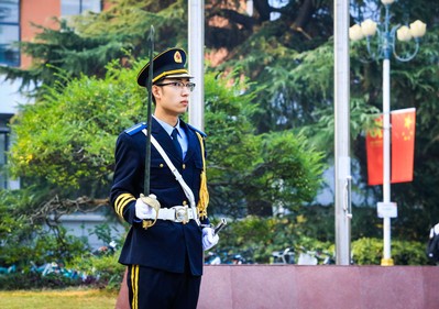壮丽70年,奋进新时代。早晨7点,校学生国旗护卫队王嘉伟同学宣布升旗仪式开始。带着新中国成立70周年的使命感、荣誉感与骄傲感,国旗护卫队队员们以昂首挺拔的军姿、踏着坚定的步伐、整齐划一的护卫着鲜红的国旗和蓝色的院旗、校旗迈向升旗台。