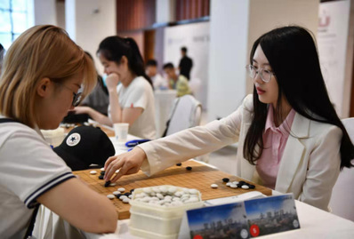 中国科大贺诗璐五段(左)对阵上海外国语大学金珊职业初段(右)