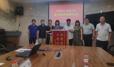 赵永进副处长接受了孟脑小学赵校长敬赠的锦旗,“真情捐助、大爱无边”表达了他们的的感谢。袁平波副主任对捐赠的计算机使用情况做了介绍。