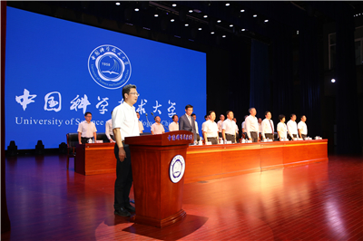 9月1日上午,中国科学技术大学2019级本科生开学典礼在东区大礼堂隆重举行。校党委书记舒歌群,校长包信和,校党委副书记、纪委书记毕金初,校党委常委、总会计师黄素芳,校党委常委褚家如,校党委常委、校长助理、秘书长傅尧,校长助理、教务长周丛照,少年班学院院长、合肥微尺度物质科学国家研究中心副主任陈旸,数学科学学院党委书记、副院长黄文,物理学院党委书记、副院长陈向军,化学与材料科学学院执行院长刘世勇,工程科学学院执行院长吴恒安,信息与智能学部党工委书记、副部长、信息科学技术学院党委书记陈卫东,地球和空间科学学院执行院长汪毓明,生命科学与医学部执行部长、生命科学学院执行院长薛天,信息与智能学部常务副部长、计算机科学与技术学院执行院长李向阳,管理学院党委书记、副院长古继宝,人文与社会科学学院党委书记褚建勋,校友代表,商汤科技创始人汤晓鸥等出席开学典礼并在主席台就坐,各院、系、机关有关部门负责人和全体本科新生及班主任参加了开学典礼。开学典礼由校党委副书记蒋一主持。