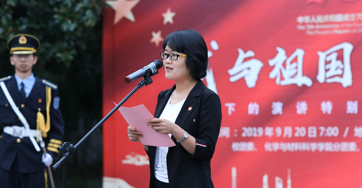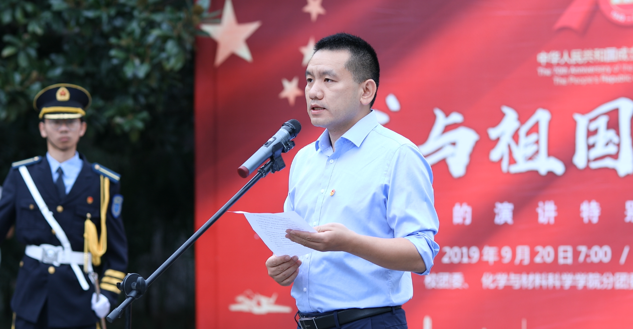 9月20日清晨,为庆祝新中国成立70周年、中国科大建校61周年,我校举行校庆日升旗仪式暨“我与祖国共奋进——国旗下的演讲”特别主题团日活动,旨在通过“沉浸式”的仪式教育,传承和弘扬“红专并进,理实交融”的校训精神,激励和引导广大团员青年大力弘扬以爱国主义为核心的伟大民族精神,进一步坚定“四个自信”。仪式活动由校团委书记杨晓果主持,校团委相关人员、化学与材料科学学院团员青年代表、在校师生代表共同参加。