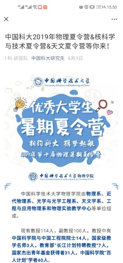夏令营报名工作已经接近尾声,营员筛选和各项准备工作正在紧锣密鼓地开展当中,七月中旬,将有四千余名来自全国双一流高校的优秀大学生走进科大,相信今年的夏令营定会成为各位营员难忘的记忆。