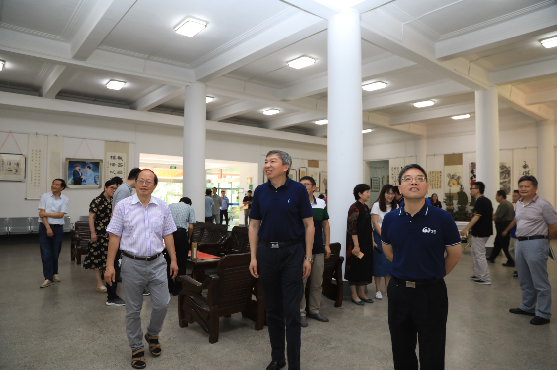 为庆祝建国70周年,活跃C9高校教职工书画艺术创作,推动校园文化建设,促进各校职工书画艺术交流,6月24日上午10:30,C9高校教职工书画作品巡展首展在我校东区老图书馆一楼大厅开幕。校党委书记舒歌群出席开幕式并致辞。校工会常务副主席史明瑛,校教职工书画协会主席杨晓勇,副主席方浩、岳兴林,部分机关部门负责人,书画协会骨干成员,参展作者代表等出席开幕式。开幕式由校党委副书记何淳宽主持。