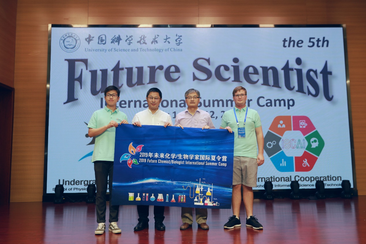 7月1日上午,来自各个国家的营员和校内志愿者在东区水上报告厅参加了开营仪式。来自纽卡斯尔大学的Timothy Nisbet作为化学/生物分营营员代表发言,他表达了对本次夏令营的向往和期待。中国科学技术大学校长助理、教务长周丛照向师生代表授予“未来化学/生物学家国际夏令营”营旗。