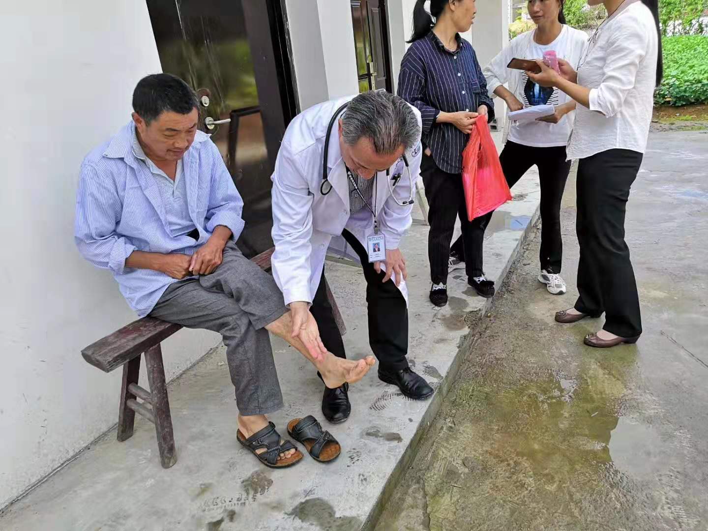 爱心医疗团在临床医学院执行院长、附属第一医院副院长翁建平的带领下,首先来到石关乡敬老院进行爱心义诊,并给敬老院的老人们送去粮油等物资。