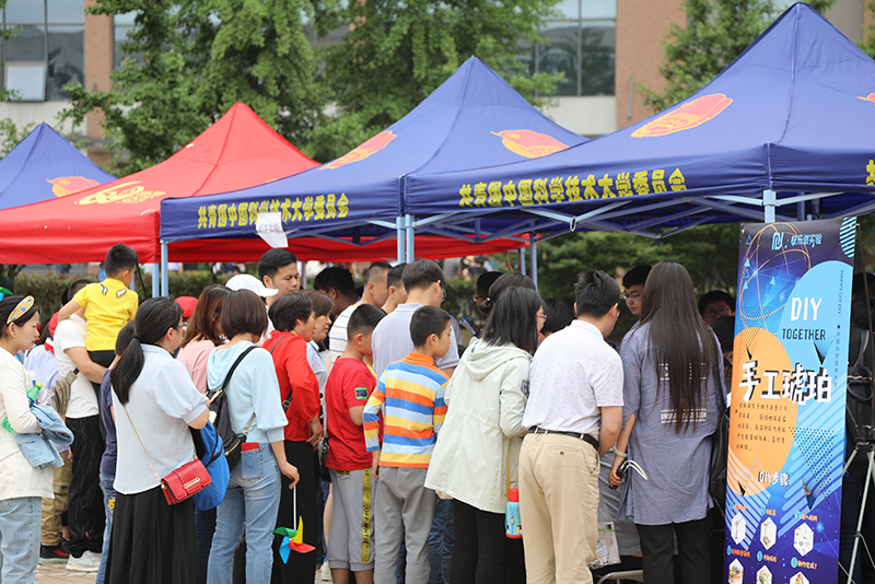 两天来,校园里人来人往,各个科普开放点前的参观者们接踵比肩,其中既有中小学校统一组织的参观游览,还有不少家长带着孩子前来学习。在理化大楼一旁排起的长队中,来自凤台县实验二小的学生说:“我一直想来科大看,学习科大的老师和学生钻研科学的精神。”在郭沫若广场前,一位家长对记者说:“周末带着孩子来科大游览科技活动周,既能激发孩子的学术兴趣,又能在绿色校园中散散步。科技活动周很适合年轻家庭出游。”