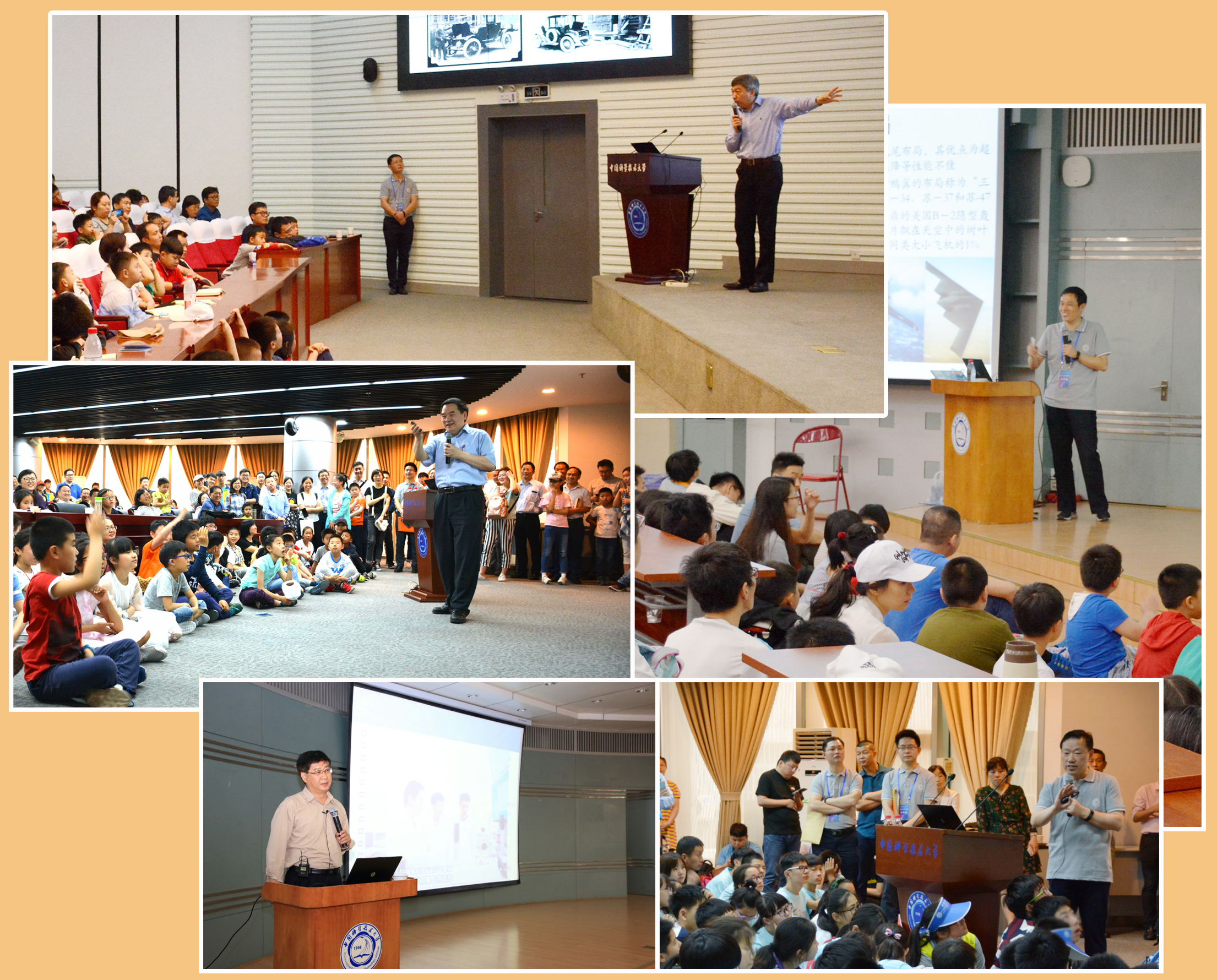 今年的科技活动周新增了一项重要内容,校党委书记舒歌群教授,校长包信和院士,党委常委、副校长罗喜胜教授,党委常委、统战部部长褚家如教授,国家同步辐射实验室主任陆亚林教授等走进活动周第一线,面向参观的学生和家长朋友分别做《汽车动力的过去、现在和未来》《能源的明天,人类的未来》《飞行的梦想与奥秘》《仰望星空-精密天文仪器及技术》《探索同步辐射光源的奥秘》科普报告。19日,五场报告会在东西校区举行,报告深入浅出,精彩纷呈,深深吸引了听众,会场座无虚席。