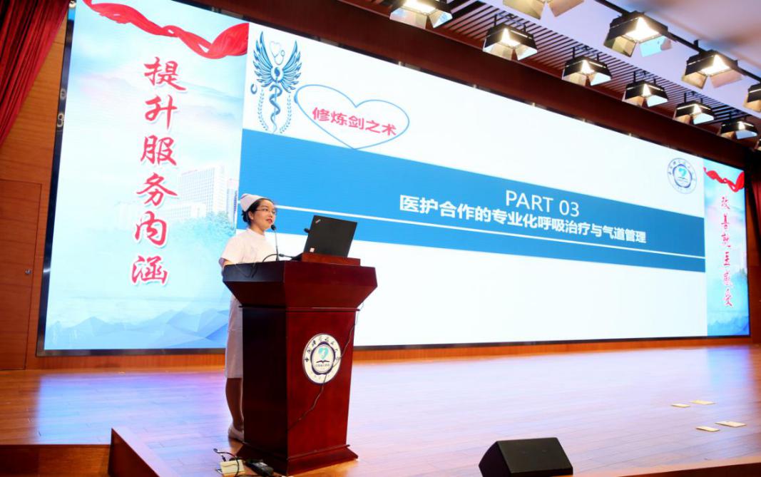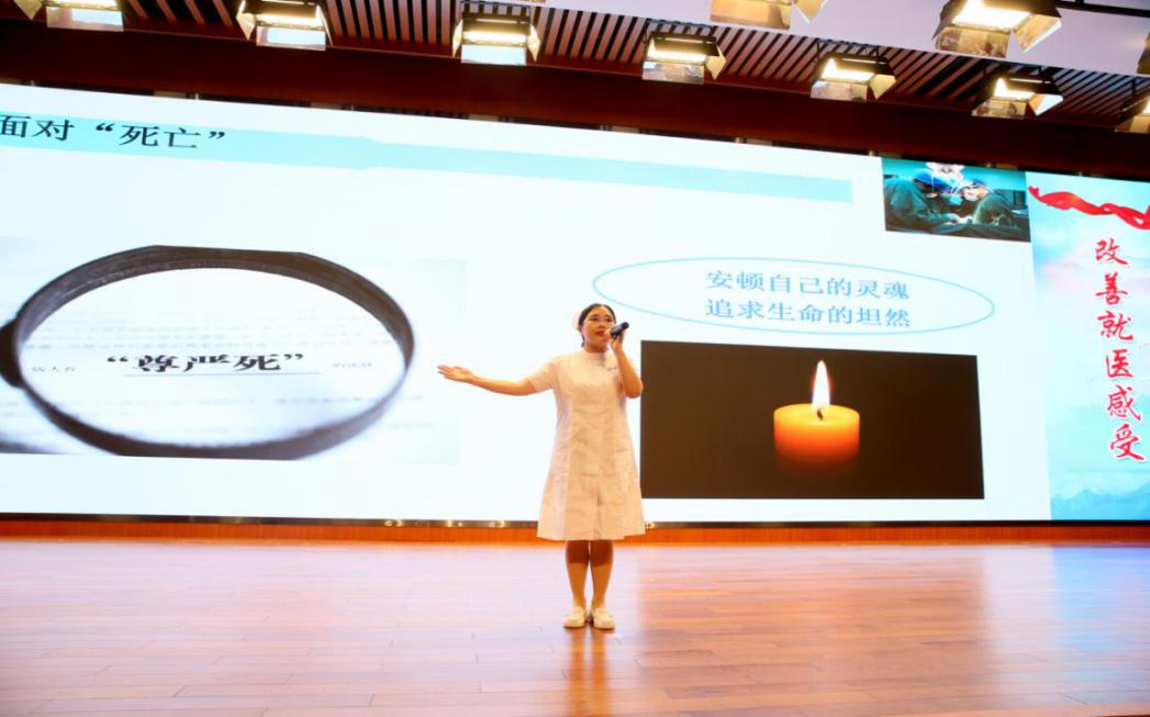 总院心内科叶婷婷代表全院护士发言,她回顾了自己的成长历程及取得的进步,表达了对护理工作的热爱和执着,展现了年轻一代护理人的风采。总院ICU董晓燕和万元元代表读书报告会优秀选手汇报,她们用朴实的语言、感人的故事,阐释了什么是“最好的告别”、护理工作中的人文关怀,以及对器官捐献者和器官移植医护人员的崇高敬意。南区ICU姚秀英和王俊进行了“发现最佳护理实践--改善医疗服务行动”擂台赛优秀案例的展示,展现了护理工作者娴熟的专业技术和团队合作精神。